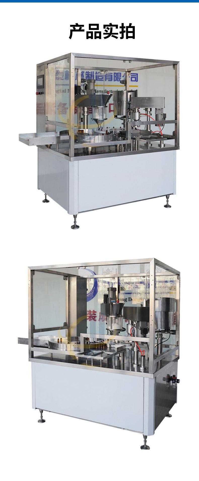 全自动粉剂灌装旋盖一体机适用于微量类面粉粉剂灌装。人工进瓶,设备自动进瓶,自动定量灌装,自动旋盖。PLC触屏控制。