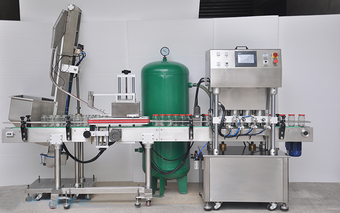 全自动直线式真空旋盖机采用世界知名工厂电器和气动元件,故障率低,性能稳定可靠,使用寿命长,主要用于玻璃瓶马口铁盖的灌装。