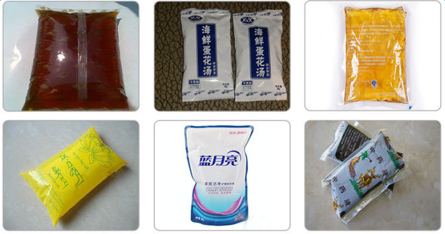 全自动无气泡膏体包装机开机温度达到恒温→设置参数→人工需将物料倒入料斗或用管引入(机器自动从料斗吸入物料)→按设定重量自动定量下料→自动包装机自动制袋成型 (可选配冲孔、插角、排气等附件装置)→填充→封合→打印日期→包装机完成自动封切→-成品包装经成品输送机输送