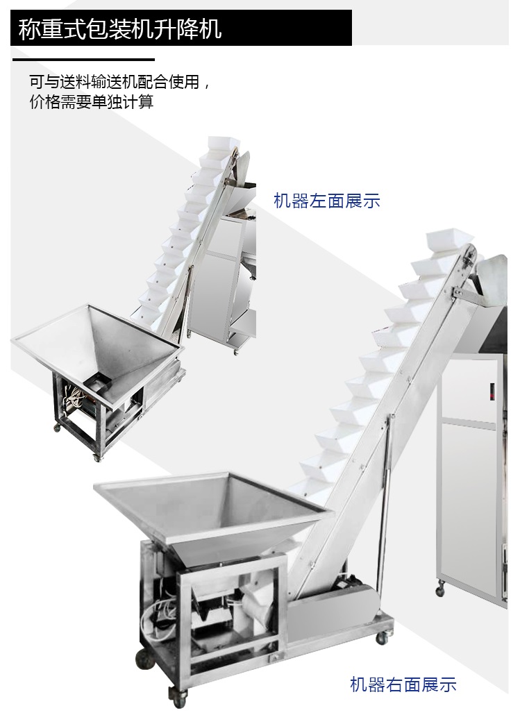 称重包装机针对包装对象的形态类别可分为颗粒称重包装机、粉剂称重包装机、全自动称重包装机、食品称重包装机等,称重包装机称重一字的意义是非常重大的, 包装机带有了称重的标志表明包装机的包装计量更加的准确,相对一般包装机的突出的特点是多添加了包装秤,保证被包装对象在这里得到很好的计量称重,计量 的准确性,大大的保证了消费者的利益,同时本款称重包装机采用不锈钢的材质,清洗护理更加方便,同时本款称重包装机和其他的机械如封口机、喷码机、贴标 机、打包机等可形成便捷的包装机生产线。
