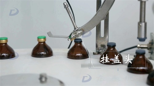 理盖振动盘将盖子进行整理,送入滑道,后滑入挂盖头