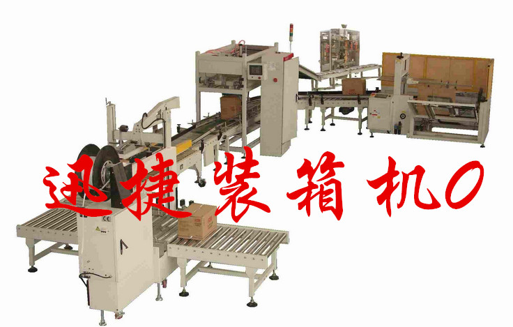 装箱机原理用于完成运输包装,将包装成品按一定排列方式和定量装入箱中,并把箱的开口部分闭合或封固。迅捷包装机械是一家生产包装机、装箱机、开箱机、收缩机、灌装机、打码机等包装机器的厂家。迅捷装箱机有自己的专利技术,其生产的装箱机有其特的技术特点。
