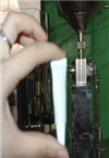 2、加入产品之后,手压下手动操纵杆,压到产品能正常从灌装嘴出来为止。